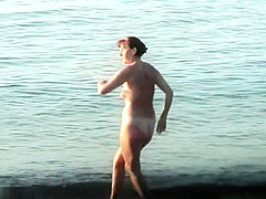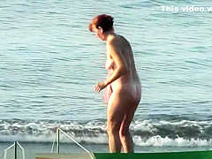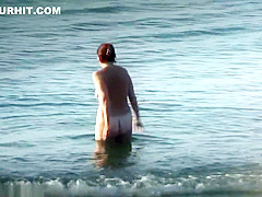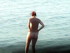Hotty with plug in the a-hole positions for a lad at a public beach