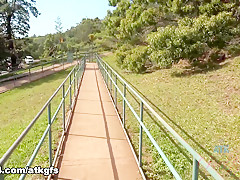Breana in bitch gives face hole gagging bj in the outdoors