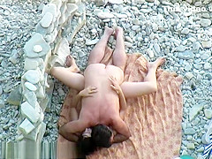 Hotty with plug in the a-hole positions for a lad at a public beach