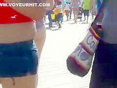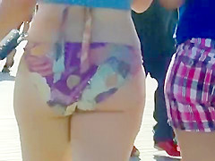 Hotty with plug in the a-hole positions for a lad at a public beach