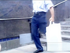 Hotty with plug in the a-hole positions for a lad at a public beach