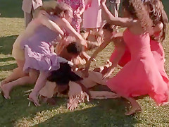 2 sexy girlfriends have sex outdoors