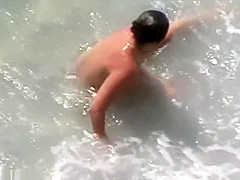 Hotty with plug in the a-hole positions for a lad at a public beach