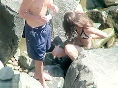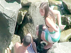 Hotty with plug in the a-hole positions for a lad at a public beach