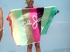 Hotty with plug in the a-hole positions for a lad at a public beach