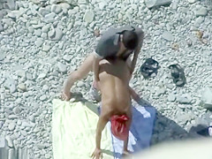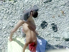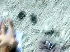 Hotty with plug in the a-hole positions for a lad at a public beach