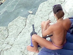 Hotty with plug in the a-hole positions for a lad at a public beach