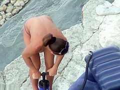 Hotty with plug in the a-hole positions for a lad at a public beach