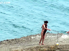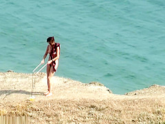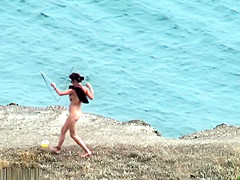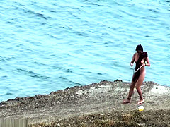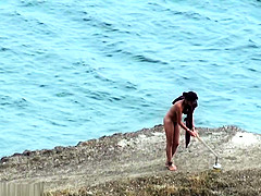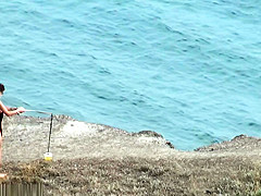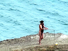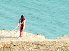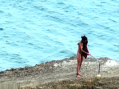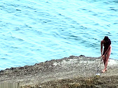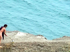 Hotty with plug in the a-hole positions for a lad at a public beach