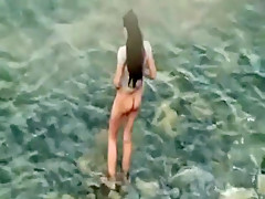 Hotty with plug in the a-hole positions for a lad at a public beach