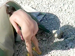 Hotty with plug in the a-hole positions for a lad at a public beach