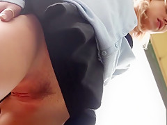 Slim non-professional blondie outdoor toying