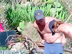 Hotty with plug in the a-hole positions for a lad at a public beach