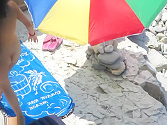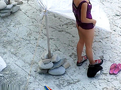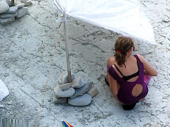 Hotty with plug in the a-hole positions for a lad at a public beach