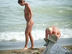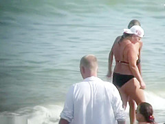 Hotty with plug in the a-hole positions for a lad at a public beach