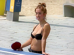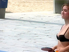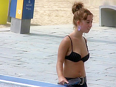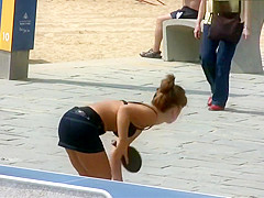 Hotty with plug in the a-hole positions for a lad at a public beach
