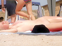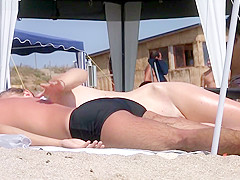 Hotty with plug in the a-hole positions for a lad at a public beach