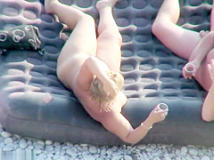 Hotty with plug in the a-hole positions for a lad at a public beach