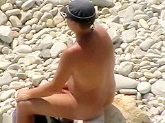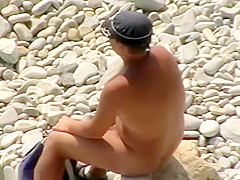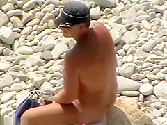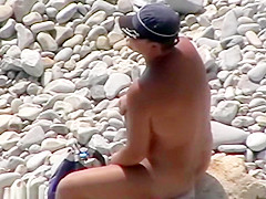 Hotty with plug in the a-hole positions for a lad at a public beach