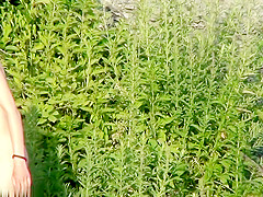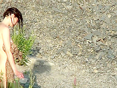 Hotty with plug in the a-hole positions for a lad at a public beach