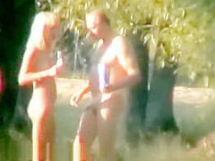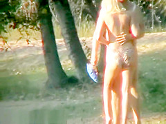 Hotty with plug in the a-hole positions for a lad at a public beach