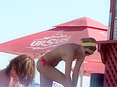 Hotty with plug in the a-hole positions for a lad at a public beach