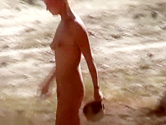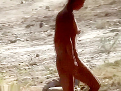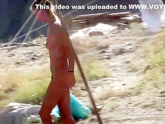 Hotty with plug in the a-hole positions for a lad at a public beach