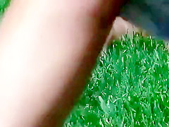 Hotty with plug in the a-hole positions for a lad at a public beach