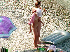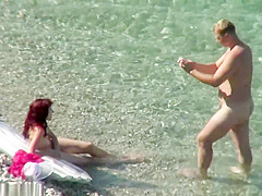 Hotty with plug in the a-hole positions for a lad at a public beach
