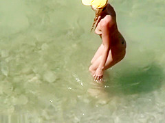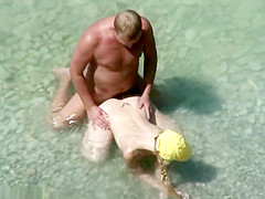 Hotty with plug in the a-hole positions for a lad at a public beach