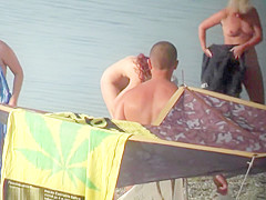 Hotty with plug in the a-hole positions for a lad at a public beach