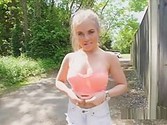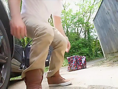 Stranded Large Tit Gymnast Blows Hard 10-Pounder In Car