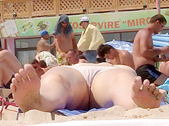 Hotty with plug in the a-hole positions for a lad at a public beach