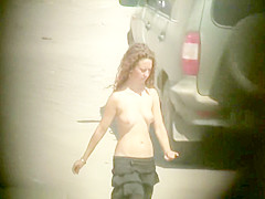 Hotty with plug in the a-hole positions for a lad at a public beach