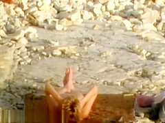 Hotty with plug in the a-hole positions for a lad at a public beach