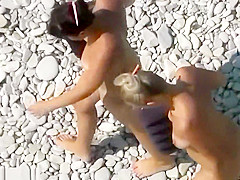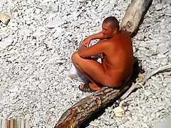 Hotty with plug in the a-hole positions for a lad at a public beach