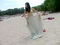 Hotty with plug in the a-hole positions for a lad at a public beach