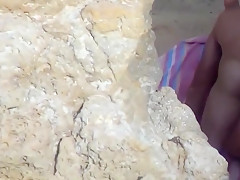 Hotty with plug in the a-hole positions for a lad at a public beach