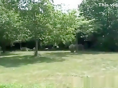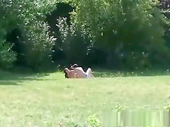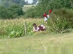 Outdoor threesome with spectators