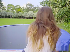 Voyeur Bangs Natural Breasty Sweetheart On Trampoline