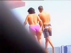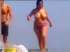 Thick Woman Wth Large Tits At A Beach