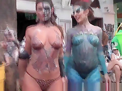 Hot Sweethearts Showing Off Their Sexy Body Painting Outdoors