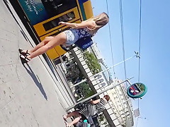 Candid Blond in Wedges and Shorts