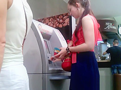 A Hotty With A Ally Near The Specie Machine In Upskirt