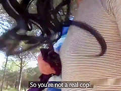 Black Haired Dilettante Sucks Cops Cock Outdoors