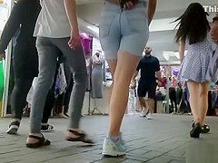 Hotty with plug in the a-hole positions for a lad at a public beach