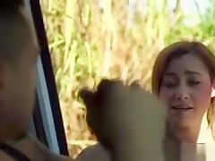 Breana in bitch gives face hole gagging bj in the outdoors