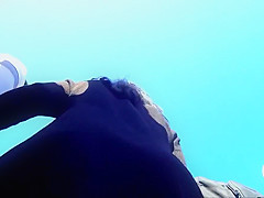 Hotty with plug in the a-hole positions for a lad at a public beach