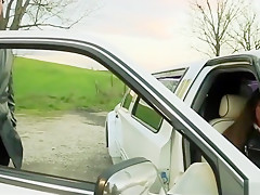 Sexy hitchhiker gets slammed about the roadside
