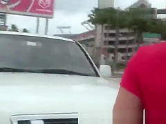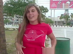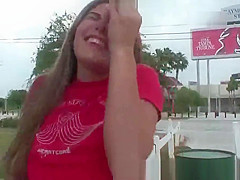 Diminutive legal age teenager flashing her love bubbles and love tunnel off in public